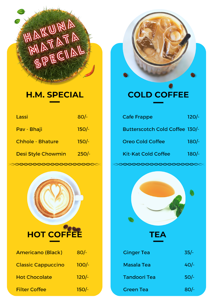 Welcome to Hakuna Matata Cafe, a delightful addition to Shahjahanpur’s culinary scene. Perfectly nestled near Durga Hotel, this cafe offers more than just great food; it promises an experience filled with adventure and creativity. The ambiance is both inviting and vibrant, making it an ideal spot for small gatherings or parties with friends and family.
